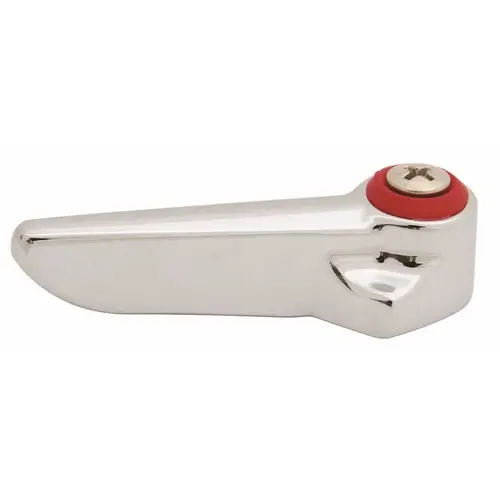 Lever handle, red index (hot), screw applicable for commercial kitchens, schools, hospitals, nursing homes, health care markets and residential markets. Fits all standard T&S compression and ceramic cartridges. Chrome plated metal handle.