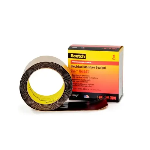 Scotch® sealant is a 45 mil thickness, premium-grade, electrical moisture sealant pad that is used to seal electrical connections up to 600 V. Made of durable vinyl and PVC, this tape withstands a wide temperature range of 32 to 100 deg F. The sealant ensures conformability with an aggressive mastic adhesive. Scotch® sealant is an abrasion-resistant sealant roll with an all weather grade PVC backing that resists moisture, alkalies, acid copper corrosion and varying weather conditions. The sealant is suitable for use in both indoor and outdoor applications and is compatible with thermoplastic rubber wire insulation. RoHS 2011/65/EU Compliant.