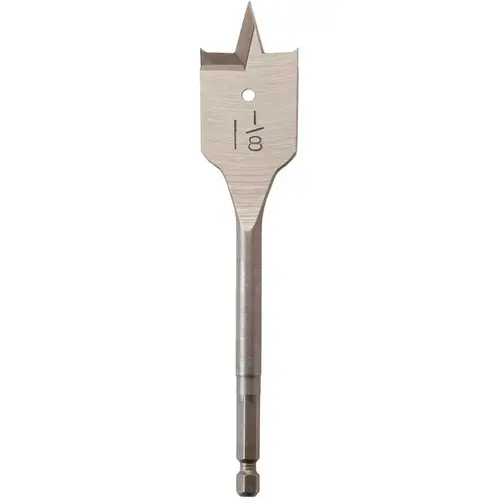 Bore small, clean holes at any angle in a variety of materials with the economical Milwaukee 1-1/8 in x 6 in flat boring bit. This premium quality flat boring bit is made of heat-treated high carbon steel, so the drill point and cutting edge can be resharpened for cost savings and long life. Bore clean, fast holes at any angle in wood, plastic, plywood and formica. This bit offers a 6 in drilling depth but can be used with a 12 in extension (48-28-3350) for extended deep-hole drilling. 3/16 in shank Dia.
