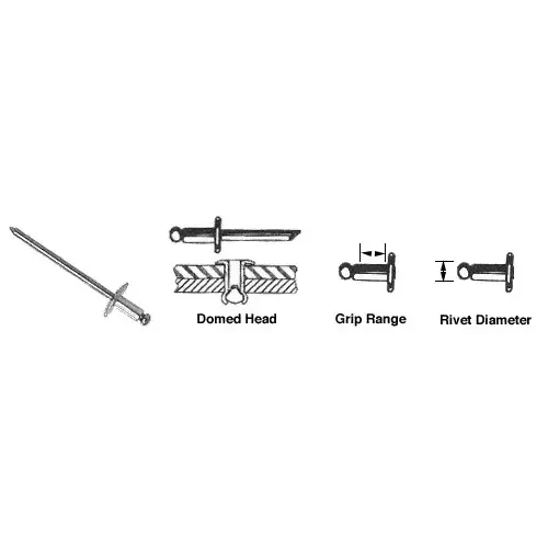 To find the proper catalog number, check the grip range and diameter below. When selecting the proper blind rivet to meet your requirements, take into account the joint strength, joint thickness, and nature of materials to be joined. Also consider the type of head that best suits the intended rivet application. The diameter of rivet you select will depend on the desired joint strength. Blind Rivets develop joint strength in two ways: by clinch of the counterhead and by compression of the rivet body against the walls of the hole. Rivet grip is the combined thickness of the materials being fastened. Select the rivet length by choosing one whose grip range includes the thickness of the materials to be joined. One length of rivet can be used for a range of material thicknesses. It is better to choose a rivet that is too long than one that is too short. You should consider also the materials to be joined. If using a soft material, you may need to use a