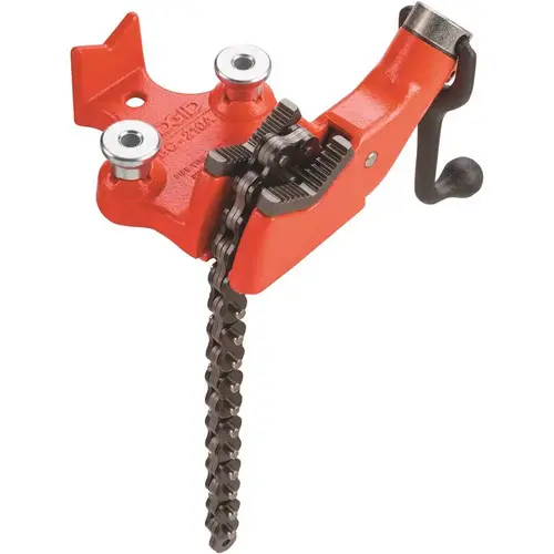 Hold pipe and tubing in place with the RIDGID BC210A Top Screw Bench Chain Vise. The bench vise securely holds pipes without scoring the edges. It has a built-in crank handle conveniently anchored to the base for tightening the chain. A handy side pipe rest and bender help steady the pipe while providing leverage. Built to last, the chain pipe vise features a rugged cast-iron base for exceptional durability and stability. The pipe vise has a 1/8 in. to 2-1/2 in. pipe capacity.