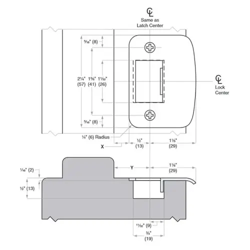 Full Lip Strike, 1-5/8" x 2-1/4", 1/4" Round Corner, Bright Chrome