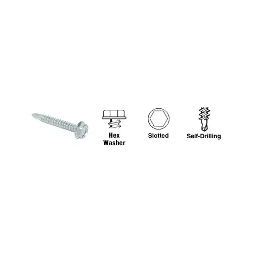 CRL Self-Drilling Screws bring new speed, mobility, and economy to on-site assembly installations. Used in curtain wall and storefront installations, metal roofing and siding, metal window frame and door installations, emergency board-ups, heating and air conditioning ducts, interior partitions, decking and subfloor assemblies, electrical circuit boxes and conduit fastening, and many other applications. Sold in quantities of 100 packed in resealable plastic tubs, and bulk packages of 1000 in poly bags.