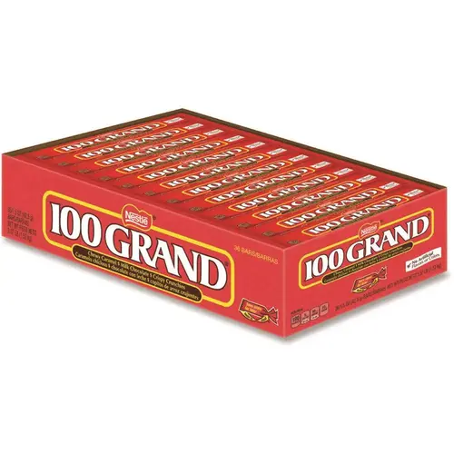 100 GRAND Chocolate Candy Bars. Chewy Caramel And Crispy Crunchies Wrapped With Milk Chocolate. Delicious candy bars for Halloween, a candy jar, or for vending machine or concession stands. Individually wrapped. Mfg #11000599