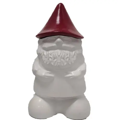 Tabletop Torch Ceramic 7" White Ghome with Red Hat