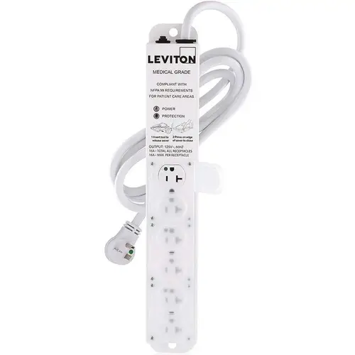Leviton™s family of medical-grade power strips are designed explicitly for use in health care facilities, including patient care spaces as defined by NEC Article 517. These devices also satisfy electrical safety requirements specified in NFPA 99: Health Care Facilities Code, allowing facility managers to ensure that their facilities are compliant with this safety regulation. Surge-protective models are UL 1449 compliant, providing the ultimate protection against voltage surges that can damage or diminish the performance of sensitive electronic equipment.