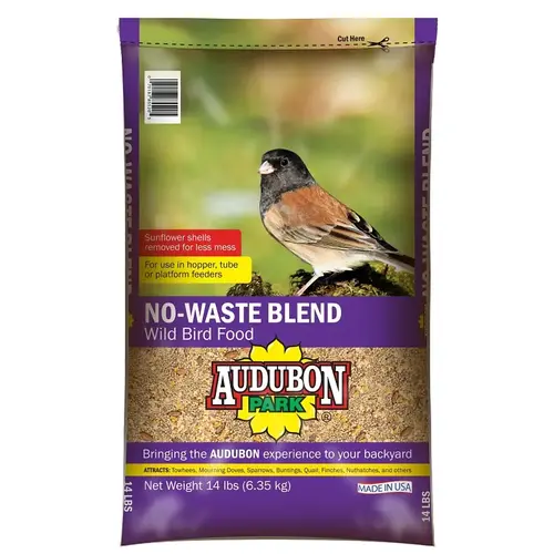 Audubon Park Wild Bird Food, No-Waste Blend, 14 lb Net Content, Suitable Feeder Type: Hopper, Platform, Tube, Attracts: Buntings, Finches, Mourning Doves, Nuthatches, Quails, Sparrows, Towhees, Ingredients: Dehulled Millet, Dehulled Sunflower, Peanuts, Cracked Corn