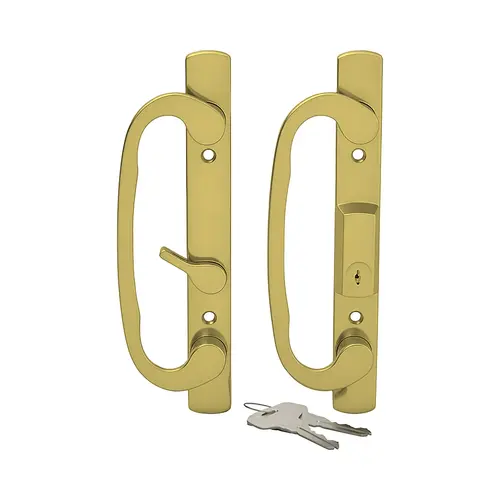 Patio Door Handle Keyed Offset Latch Brass Plated Finish