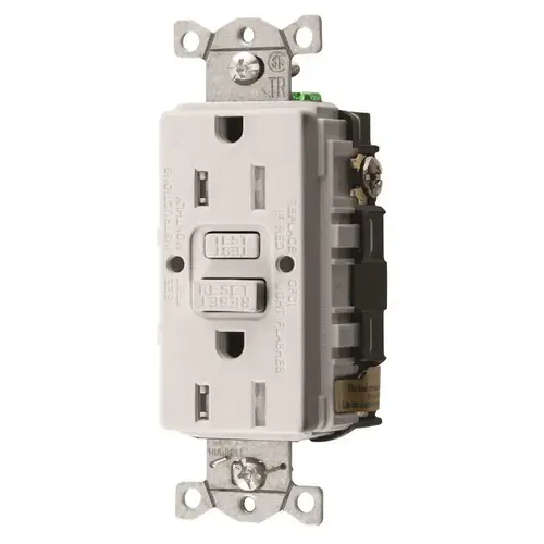 Hubbell AUTOGUARD GFCI receptacles continually test and monitor for people protection capability automatically. This patented safety feature includes disconnecting power to the receptacle if critical components are damaged and GFCI protection is lost. GFCI auto-monitoring is conducted continuously within every 30 seconds. Also, clear visual indicators are provided on the device face representing power status, trip condition, ground fault condition and end of life status. In addition, for added safety, power will be denied to the receptacle face if reverse wiring of line and load was to occur.