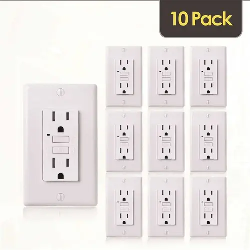 The Faith Electric GLS-15ATR-WH-10 self-testing, tamper-resistant ground fault circuit interrupter outlet provides continuous protection from ground faults, disconnecting power in 1/40 of a second if a dangerous condition is detected. Once connected to power, this GFCI receptacle automatically self-tests every 2-1/2 hours. The green indicator LED light turns off if the outlet is not receiving power, is broken or is at end-of-life. Tamper-resistant shutter safety mechanism blocks access to power unless a plug is inserted. Slimmer, modern design for easier and quicker installation in electrical boxes. Test and reset buttons match device face color to blend in seamlessly. Meets or exceeds UL943 2015 standards. Compliant with National Electric Code (NEC) requirements. ETL Listed 10-Pack. Each pack includes (1) White 15 Amp, 125-Volt GFCI duplex outlet, (1) wall plate, (2) screws, installation manual and stickers.