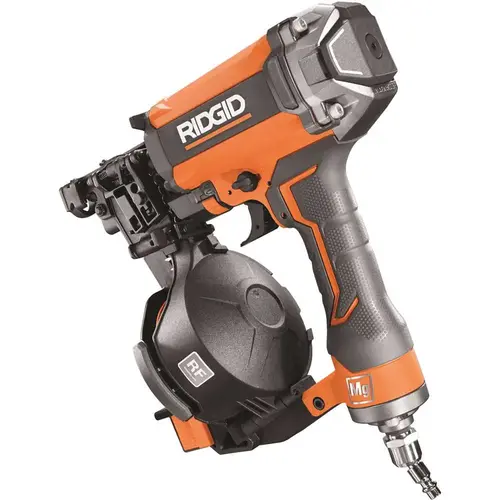 RIDGID introduces the 15-Degree 1-3/4 in. Coil Roofing Nailer. This roofing nailer is a perfect combination of power, weight, and speed. Packed with FASTEN EDGE Technology, an industry leading feature set, this nailer can take on any roofing job. This tool is also backed by the Industry Leading Lifetime Service Agreement meaning FREE Parts. FREE Service. For LIFE. The Coil Roofing Nailer comes with a swivel connect, oil, hex key, no-mar pads, and an operator's manual.