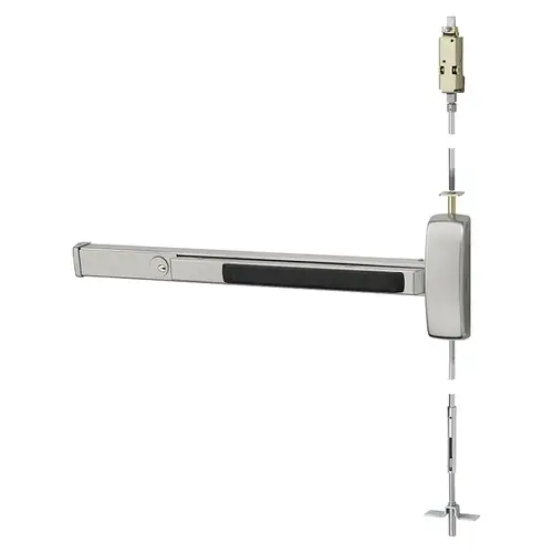 Concealed Vertical Rod Exit Device, Classroom, Less Trim, 42", Wood Doors, Cylinder Dogging, Satin Nickel