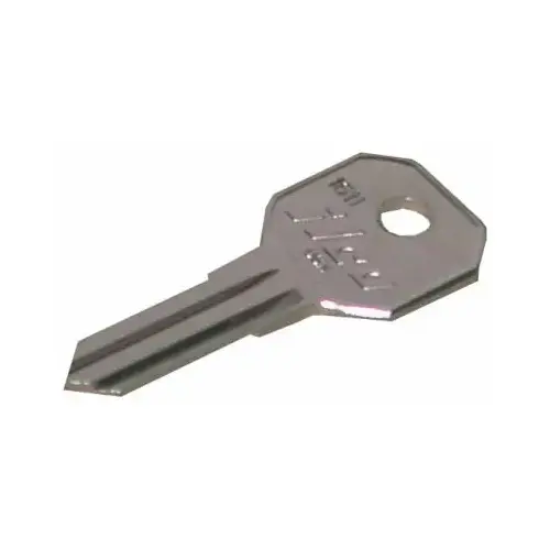 This automotive key blank is manufactured from solid brass. It is nickel plated to assure a long-lasting, durable and bright finish. This is a genuine KABA ILCO product.