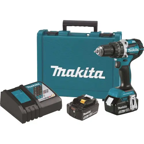 The Makita 18-Volt LXT Lithium-Ion Brushless Cordless Hammer Driver-Drill (XPH12T) is an ideal drilling and driving solution for the user who wants more features. The XPH12T combines 530 in. lbs. of Maximum Torque with an efficient brushless motor that delivers up 50% more work per charge, increased power and speed and longer tool life. For the pro user, this means more drilling and driving power, greater productivity and fewer trips up and down the scaffolding or ladder to get to the battery charger. In driver mode, the adjustable torque settings provide more control for a full range of applications, from large fasteners to smaller, delicate screws. For drilling into masonry, simply switch to the percussive hammer driver-drill setting. It weighs only 4.2 lbs. (with battery) for increased comfort and superior power-to-weight ratio. The kit includes 2 efficient 18-Volt LXT 5.0 Ah batteries and each reach a full charge in only 45-minutes the fastest charge-time in the category for less downtime and increased productivity. For improved tool performance and extended battery life, Makita created Star Protection Computer Controls. Star Protection is communication technology that allows the Star Protection-equipped tool and battery to exchange data in real time and monitor conditions during use to protect against overloading, over-discharging and overheating.