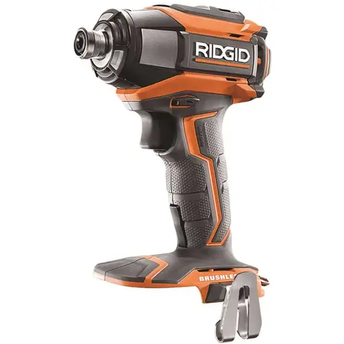 RIDGID introduces the 18-Volt Lithium-Ion Cordless Brushless 1/4 in. Impact Driver with Belt Clip (Tool Only). With a powerful 2,250 in./lbs. of torque there is no job that this impact driver cannot handle. Brushless Motor Technology gives you up to 50% more runtime, longer tool life, and improved performance. Backed by the Industry Leading RIDGID Lifetime Service Agreement, the Brushless 1/4 in. Impact Driver includes a belt hook with screws, a Phillips bit, and an operator's manual. Battery and charger sold separately.