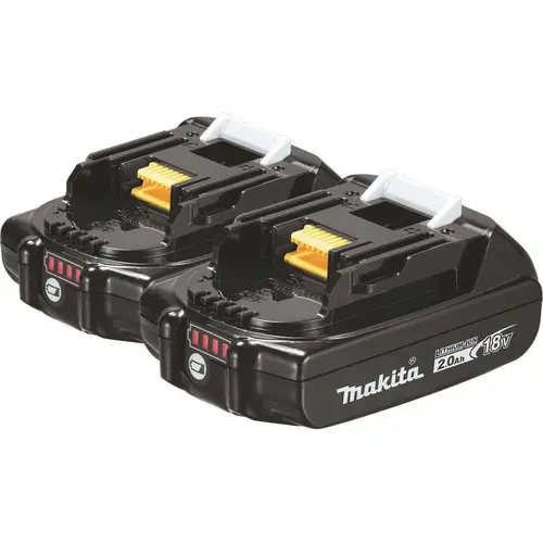 The Makita 18-Volt Compact Lithium-Ion battery charges faster and works longer than standard 18-Volt compact lithium-ion batteries, giving you and your Makita cordless tools unmatched performance and productivity in a compact size. The Makita 2.0Ah battery delivers up to 50% more run time per charge than the Makita BL1815 18-Volt Compact battery, with a fast charge time of only 25-minutes for increased efficiency. Makita 18-Volt Lithium-Ion batteries resist self-discharge so they™re ready for use even after long periods of storage. The Makita Rapid Optimum Charger (sold separately) is a smart-charging system that communicates with the battery during the charging process to monitor current, voltage and temperature. This advanced charging technology helps optimize battery life and deliver a faster charge. In addition, the Charger has a built-in fan to cool the battery for faster and more efficient charging, even in hot weather conditions. For improved tool performance and extended battery life, Makita created Star Protection Computer Controls. STAR Protection is communication technology that allows the tool and battery to exchange data in real time and monitor conditions during use to protect against overloading, over-discharging and overheating. Makita, the innovation leader in cordless tool technology, has the world™s largest cordless tool line-up powered by 18-Volt lithium-ion slide-style batteries.