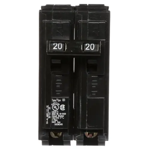 Siemens Circuit Breaker, Low Voltage, QD, 120/240 VAC, 20 A, 2 Pole, 10 kA Interrupt, Magnetic, Thermal Actuator, 14 to 10, 14 to 12, 12 to 10 AWG Wire, Plug Mounting, Dimensions: 3 in W x 3 in D x 1 in H, 40 deg C Operating, Suitable for: QO2L30F/S, QO2-4L70F/S, QO2-4L70TS, QO2-4L70RB Panel Boards