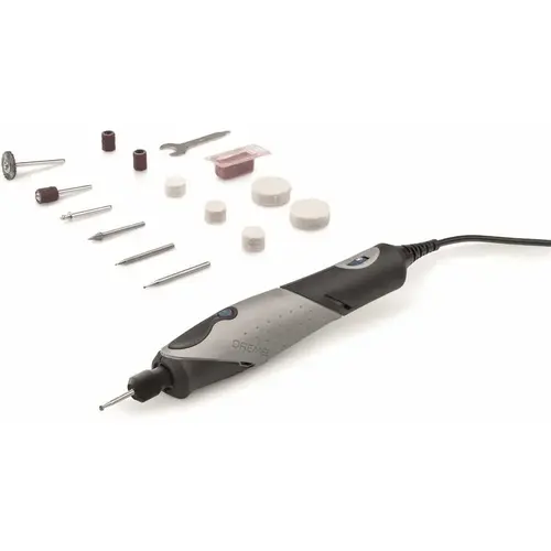 The Stylo+ offers the precision you expect from a Dremel rotary tool, packaged into a sleek, lightweight design. Crafted with the comfortable ergonomics of a pen, the narrow profile and soft grip of Stylo+ allows creative users to etch, engrave, polish and sand with ease. You will enjoy an endless range of creative applications with this versatile craft tool. The tool's variable speed ranges from 5,000 to 22,000 RPM, providing the optimal speed control for applications such as glass etching, leather burnishing, bead making, wood engraving and more. Dremel Stylo+ comes with a 2-year warranty.