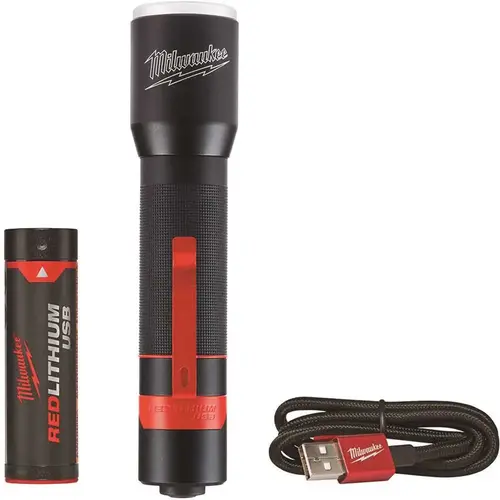 Extreme output. built for the toughest conditions. Powered by REDLITHIUM USB, the Milwaukee USB Rechargeable 700L Flashlight delivers 700 Lumens of TRUEVIEW High Definition output and is capable of all-day runtime, over 2,000 recharges and 3x faster charging via USB. Waterproof and dustproof, this flashlight can withstand submersion up to 1M and the toughest conditions on and off the jobsite. A sliding head lets users adjust their beam pattern from spot to flood with up to 155 m beam distance. The light includes High, Low and Strobe output modes and up-to 16-hours of runtime. The REDLITHIUM USB Battery can be recharged in the light via Micro USB or swapped out with additional REDLITHIUM USB Batteries for virtually no downtime. The Milwaukee USB Rechargeable 700L Flashlight is covered by a limited lifetime warranty.
