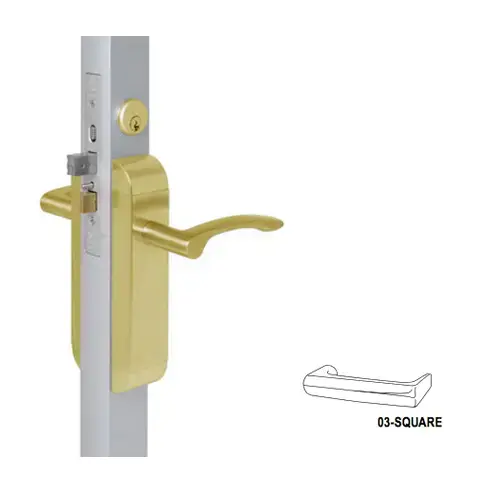 Dual Force Interconnected Lock, 1-1/8" Backset, Flat Strike, Aluminum Faceplate, Electrified 03 Square Lever Trim, Satin Stainless Steel