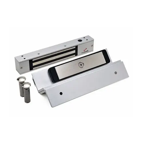 Each 2500 Series Electromagnetic Lock is comprised of 3 basic components: a lock housing, an electromagnetic coil, and an armature. The coil and housing assembly mounts rigidly to the door frame while the armature mounts to the door in a manner that allows it to pivot slightly to compensate for door irregularities. When the door is closed and the lock is energized the armature is magnetically bonded to the lock face, thus securing the door without utilizing any moving parts.