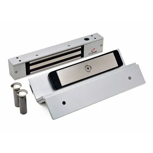 Each 2500 Series Electromagnetic Lock is comprised of 3 basic components: a lock housing, an electromagnetic coil, and an armature. The coil and housing assembly mounts rigidly to the door frame while the armature mounts to the door in a manner that allows it to pivot slightly to compensate for door irregularities. When the door is closed and the lock is energized the armature is magnetically bonded to the lock face, thus securing the door without utilizing any moving parts.