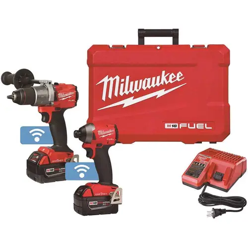 The Milwaukee M18 FUEL 2-Tool Combo Kit with ONE-KEY has the highest performing Hammer Drill and Impact Driver in the industry with the added control of ONE-KEY technology. The power tool kit includes the M18 FUEL 1/2 in. Hammer Drill/Driver with ONE-KEY (2806-20). The cordless drill delivers Up To 60% More Power, is Up To 1.5 in. Shorter Length and delivers Up To 2X Faster Speed Under Heavy Load. At 1,200 in./lbs. of torque and only 6.9 in. L, the hammer drill has the power for demanding applications and the ability to access tight spaces. The hammer drill's Anti-Kickback technology increases user control in bind-up situations and reduces unwanted shut-downs, with the added benefit of controlling sensitivity preferences and ability to turn on and off. Also included is the M18 FUEL 1/4 in. Impact Driver with ONE-KEY (2857-20). The hex impact driver is the Fastest, Most Compact and Most Powerful Impact Driver in its class. With up to 2,000 in./lbs. of torque, it delivers Up To 30% Faster Driving Speed at only 4.59 in. L, with Up to 25% More Power.