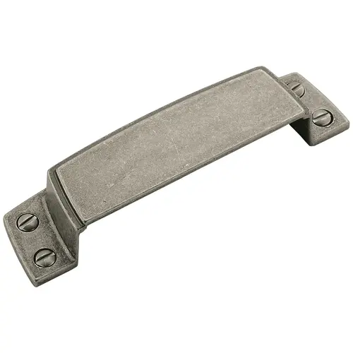 The Amerock BP55318AP Highland Ridge 3-1/2 in (89 mm) Center-to-Center Cup Pull is finished in Aged Pewter.