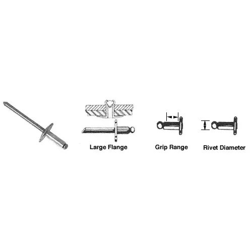 To find the proper catalog number, check the grip range and diameter below. When selecting the proper blind rivet to meet your requirements, take into account the joint strength, joint thickness, and nature of materials to be joined. Also consider the type of head that best suits the intended rivet application. The diameter of rivet you select will depend on the desired joint strength. Blind Rivets develop joint strength in two ways: by clinch of the counterhead and by compression of the rivet body against the walls of the hole. Rivet grip is the combined thickness of the materials being fastened. Select the rivet length by choosing one whose grip range includes the thickness of the materials to be joined. One length of rivet can be used for a range of material thicknesses. It is better to choose a rivet that is too long than one that is too short. You should consider also the materials to be joined. If using a soft material, you may need to use a