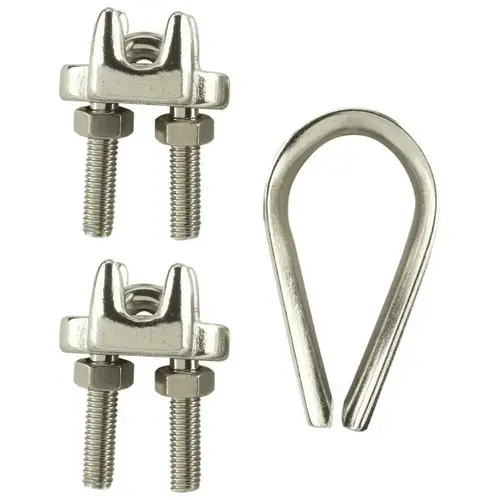Wire rope clamp sets serve as an alternative to splicing and are used to secure wire rope around a thimble. For use on uncoated wire rope. Do not use on coated wire rope without first removing the coating from the assembly area.