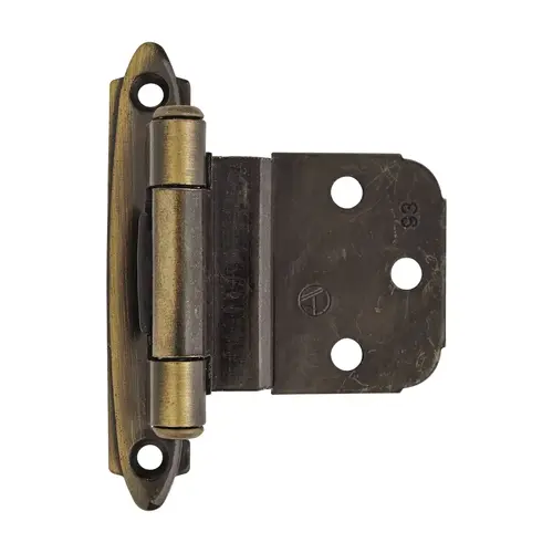 The Amerock BPR7628AE 3/8 in (10 mm) Inset Hinge is finished in Antique Brass.
