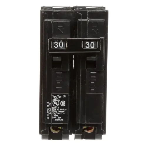 Siemens Circuit Breaker, Low Voltage, QD, 120/240 VAC, 30 A, 2 Pole, 10 kA Interrupt, Magnetic, Thermal Actuator, 10 to 8, 10 to 6 AWG Wire, Plug Mounting, Dimensions: 4.5 in W x 12.9 in D x 3.8 in H, 40 deg C Operating, Suitable for: QO2L30F/S, QO2-4L70F/S, QO2-4L70TS, QO2-4L70RB Panel Boards