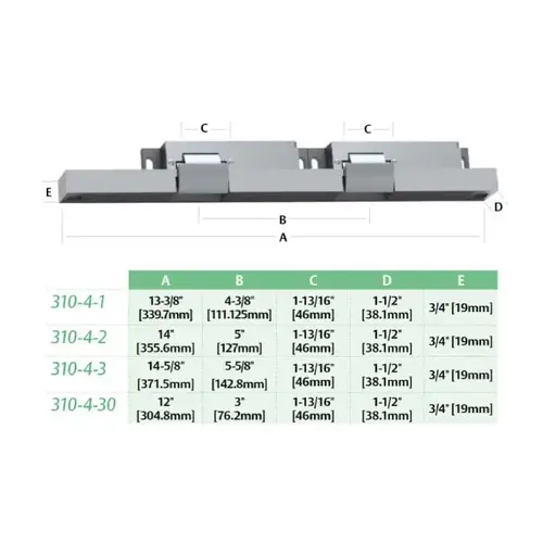 The 310-4 vertical surface mounted series is designed for heavy duty applications on single or double doors.