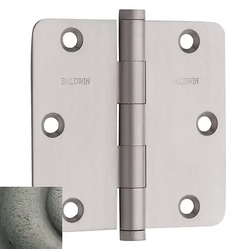 Baldwin 1435452I 3-1/2" x 3-1/2" - 1/4" Radius Mortise Hinge Distressed Antique Nickel Finish