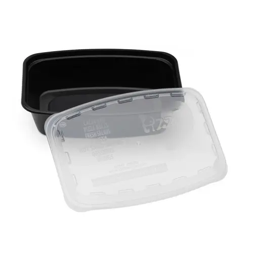 38oz Black Rectangular Container with Embossed Pizza P Clear Lid
