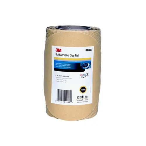 Our 3M™ Stikit™ gold disc roll 216U features aluminum oxide mineral abrasive for a sharp cut and uniform finish during collision repair. These tear-off discs are packed into a single roll and feature Stikit™ adhesive attachment, making them exceptionally fast and easy-to-use. Load-resistant coating and available seven-hole pattern help clear dust from the disc surface for longer life. 3M™ Stikit™ disc rolls are multiple adhesive backed abrasive discs rolled onto a core. This makes them easy to tear-off one at a time for speed and efficiency and there's no need for liners which saves on material costs. These ready to use Stikit™ discs feature a pressure sensitive adhesive coating on the backs - simply press the disc onto the backup pad and you're ready to go. They remove just as cleanly, leaving an uncontaminated surface for the next disc.