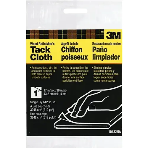 3M wood refinishers tack cloth removes dust, dirt, lint and other particles that settle on wood surfaces. Use it to prepare surfaces before applying the first coat of stain, finish or sealer and again between coats to obtain a super-smooth finish.