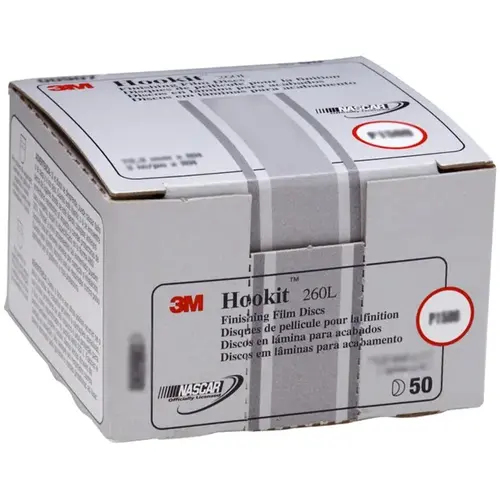 3M Hookit coated 260L hook & loop disc uses aluminum oxide as the abrasive material and has a diameter of 5 in. 3M incorporates this aluminum oxide material into the hook & loop disc forming a grit of P1000.