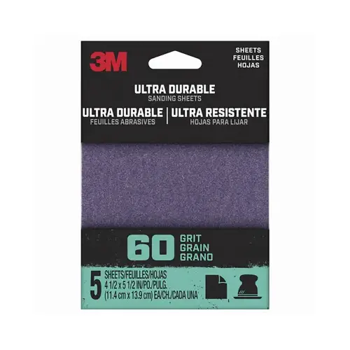3M Sandpaper Sheet, Cloth Backing, X Backing Weight, Aluminum Oxide/Ceramic Abrasive, 60 Grit, 2 in Length, 2 in Width, 1/4 in Thickness, Clip-On Attachment