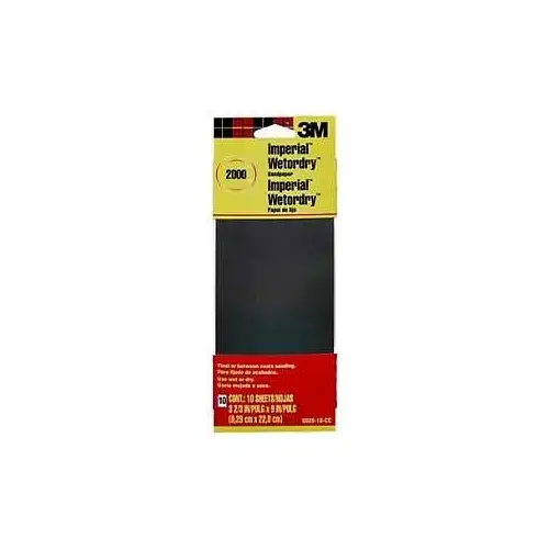 3M Sandpaper, 9 in Length, 3.66 in Width, 2000 Grit, Paper Backing, Ultra Fine Grit Grade, Silicon Carbide Abrasive, Applicable Materials: Plastic