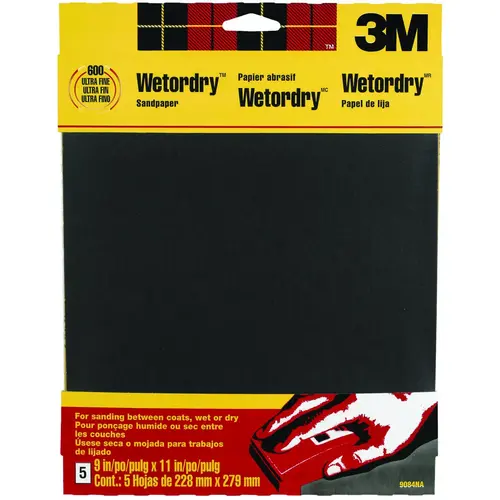 Sharp, synthetic, silicon carbide cuts fast to dry or wet sand between coats of varnish, paint and other finishes or to sand metal for repainting or prior primer coat. Use with water to reduce clogging and extend abrasive life.