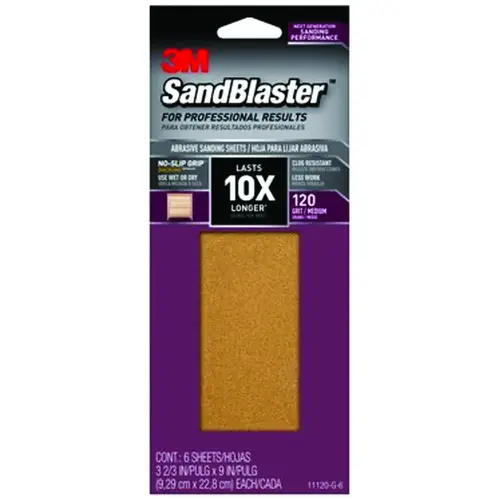 3M 11120-G-6 SandBlaster Series Sandpaper, 9 in L, 3-2/3 in W, 120 Grit, Medium, Aluminum Oxide Abrasive - pack of 6