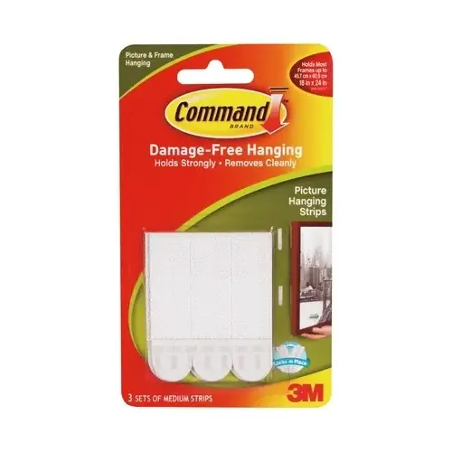 Command 17201-ES Picture Hanging Strip, 3/64 in Thick, Paper Backing, White, 3 lb - pack of 3