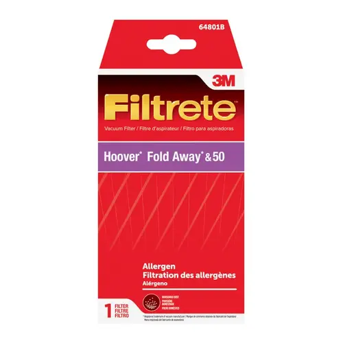 3M Hoover Fold Away and 50 Allergen Filter. Filtrete vacuum filters help capture dust mites, grass and ragweed pollen. Fits models: Hoover Fold Away, Fold Away Turbo and TurboPower 3100 units.