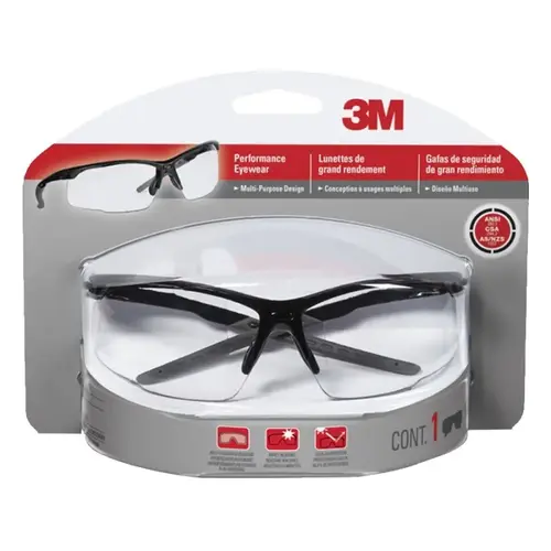 3M Performance eyewear multi-purpose design combines classic and sleek style with comfort features. Soft-touch details and lightweight design provide a comfortable fit. Designed with clear lenses, these safety glasses are great for color recognition and offer excellent UV protection. Soft-touch nose and ear pieces offer long-lasting comfort. Keep your eyes safely shielded with the 3M performance eyewear multi-purpose design.