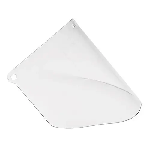 Standard size, molded general purpose polycarbonate face shield offers high impact face protection. Face shield mounts quickly to any 3M Headgear without tools, snaps or cams. Requires protective eyewear, sold separately. 3M Clear Polycarbonate Face shield WP96, Face Protection 82701, uses the 3M Easy-Change system to mount quickly and easily to 3M headgear (sold separately). When used with appropriate headgear, this face shield provides head and face protection in working environments with sparks, chips and debris. This protective faceshield is recommended when chipping, chiseling, drilling, grinding, machining, power fastening, riveting, sanding and sawing. Recommended industries include construction, general manufacturing, mining, oil and gas and transportation. The clear, molded faceshield provides unrestricted visibility and high impact protection. Note: Protective eyewear (sold separately) should be worn at all times under the faceshield. This polycarbonate faceshield meets regulated performance and safety requirements of ANSI Z87+. Faceshield measures 9" tall x 14.5" wide x 0.08 thick. Workers performing tasks in which flying sparks or particles are present should wear protection to shield their face and head. Industries in which this is typically true include metalworking, utilities and woodworking. Because the shield does not fully enclose the face, protective eyewear should also be worn to safeguard eyes.