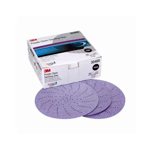 3M 30460 334U Series Multi-Hole Clean Sanding Abrasive Disc, 5 in Dia, P800 Grit, Hook and Loop, Purple