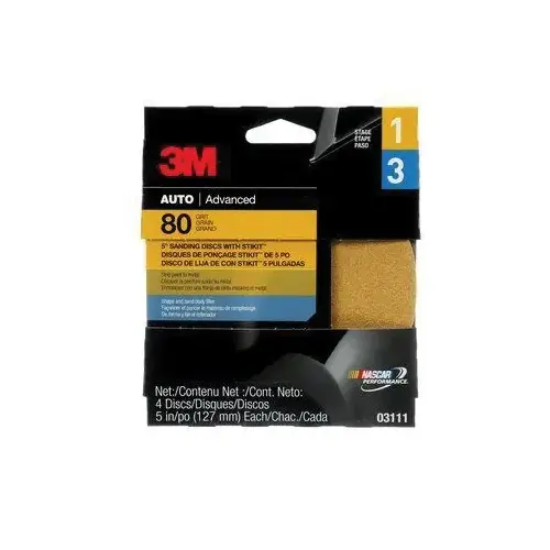 3M™ Stikit™ sanding disc makes sanding easy and convenient. Designed for automotive power sanding, the 5 in aluminum oxide disc is versatile, tough and self-fractures to continuously expose fresh cutting edges. It Is easily attached to the 6 in 3M™ Stikit™ disc pad (03146) for use with a household drill and can also be used on a dual action orbital sander and peels off once the job is done.
