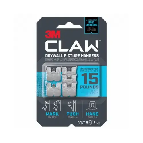 Introducing the new 3M CLAW drywall picture hanger! Trust your heavyweight hanging projects to the 3M CLAW drywall picture hanger proven to hold up to 15, 25 and 45 lb. The engineered hardened steel claws lock securely into drywall anywhere just push, hang and you're done.