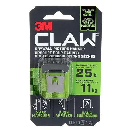 3M CLAW dry wall picture hangers are ideal for hanging heavy artwork or mirrors. In a variety of hanging strengths, these hangers have a steel claw lock to secure on drywall and come with a spot marker to mark exactly the right spot on your wall. 3M CLAW dry wall picture hangers are easy to install and don't require any tools. These dry wall picture hangers are ideal for heavy home décor and can hold heavier objects thanks to their hardened steel claw design.